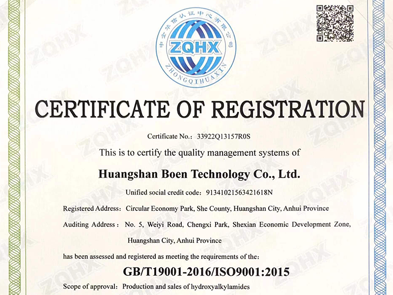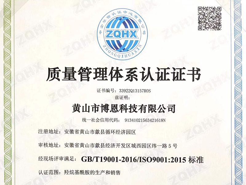 黃山市博恩科技有限公司 BOEN TECHNOLOGY 坐落于安徽省黃山市歙縣經濟開發區城西園區,是一家集研發、生產、銷售為一體的綜合型企業。 公司主營新型環保純聚酯HAA固化劑(Primid體系)。公司占地20畝,建筑面積5000多平方米...